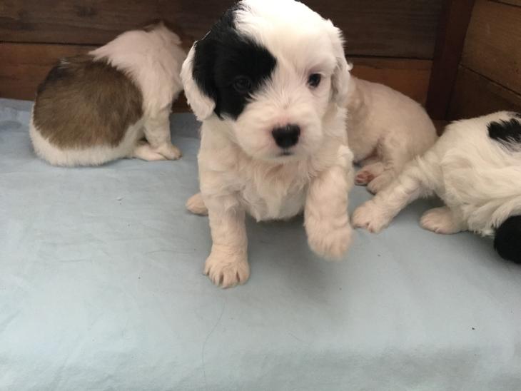 Moderen er halvt Bichon Havanais og halvt Springer Spaniel og faderen er bomuldshund.