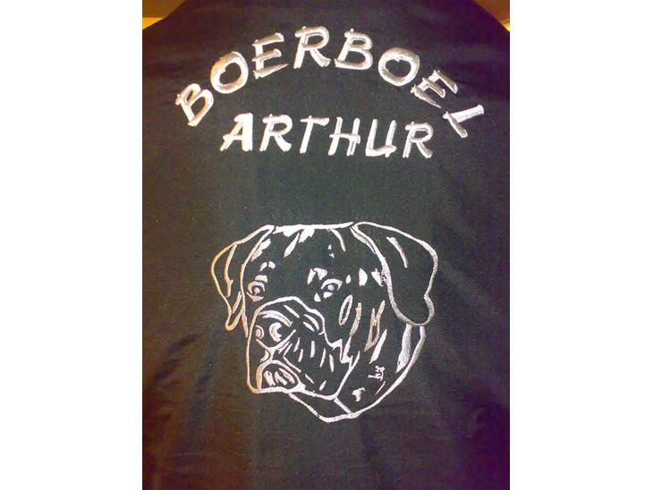 Jakke med broderi af Arthur, lavet af mine søde svigerforældre.