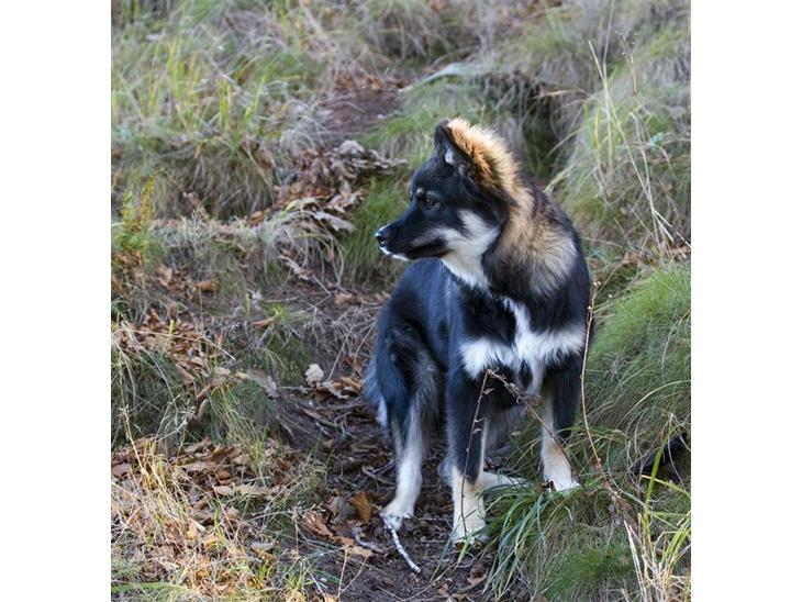 Billeder af Zola fra en tur i skoven. Han er pt. 5,5 mdr. og en værre balademager.