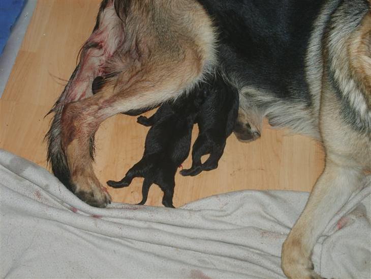 Sille har fådet 8 hvalpe i dag og det begyndet kl 7,15 og hun var ca færdig kl ca 13 og det er nogen fine basse aller sammen de liger deres far aller sammen