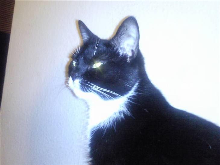 Pjevs er en lille huskat som er glad for at kysse mig hele tiden. hver gang jeg kommer hjem kommer hun og tager imod mig. hun er sort og hvid.