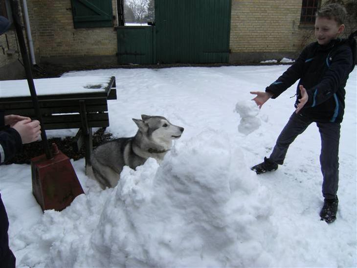 Dinna hygger sig i sneen,
