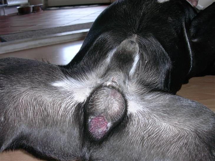 Dagen efter Foucaults kastration kan man se et område med rødmen og lidt hævelse.