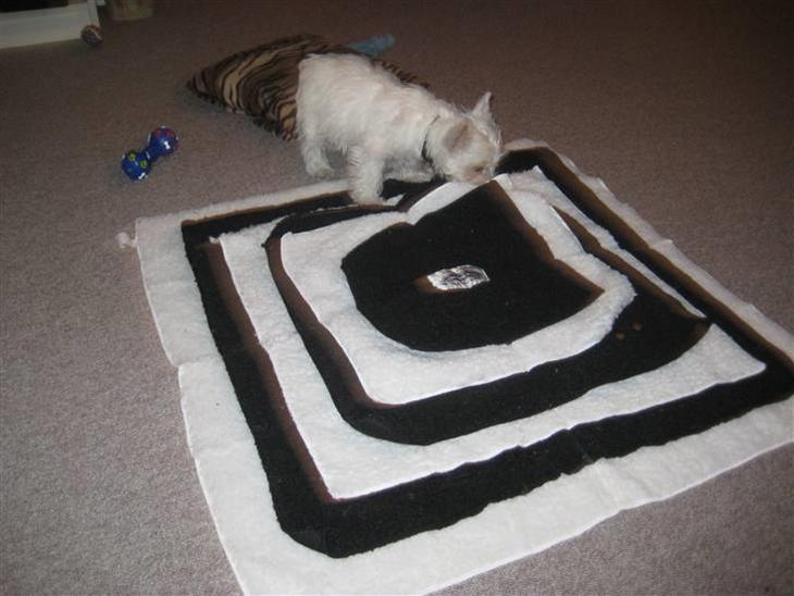 Oskar har fået et aktivitetstæppe, hvor der gemmer sig lækre godbider.