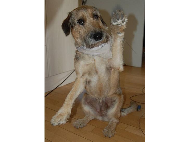 Her leger vi lidt. hun lærte for nogle måneder siden at vinke på komando :)