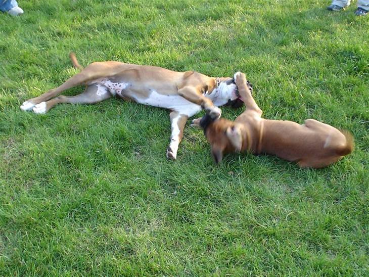 Elisabeth's bror på besøg med hans boxer Tyson...