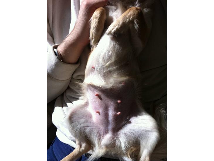 Hold da helt op. 5 stk, ja så er der ikke noget at sig til hun var så stor. Man får sku helt undt af dem var :0) Chica er begyndt at trække vejret ret dybt, og vil bare ligge hos mig. Hun er godt klar over at der forgår noget inde i hende, for hun er meget opmærksom på mig.