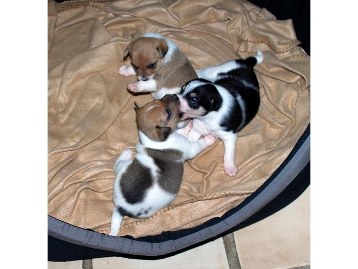 De blev født med kejsersnit, for Chicka havde presset i mange timer. Der kom ni skønne hvalpe ud, men fem af dem var død fødte. en uge senere døde en sort/hvid tæve også. Vi prøvede og flaske den da den vejede 100 gram mindre end de andre efter to/tre dage, men det hjalp ikke noget :(
