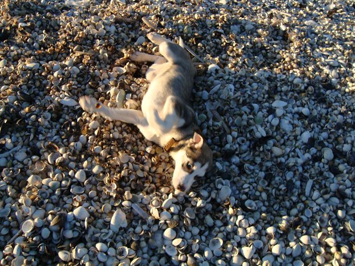 På stranden med søster Nala og Arthur :)