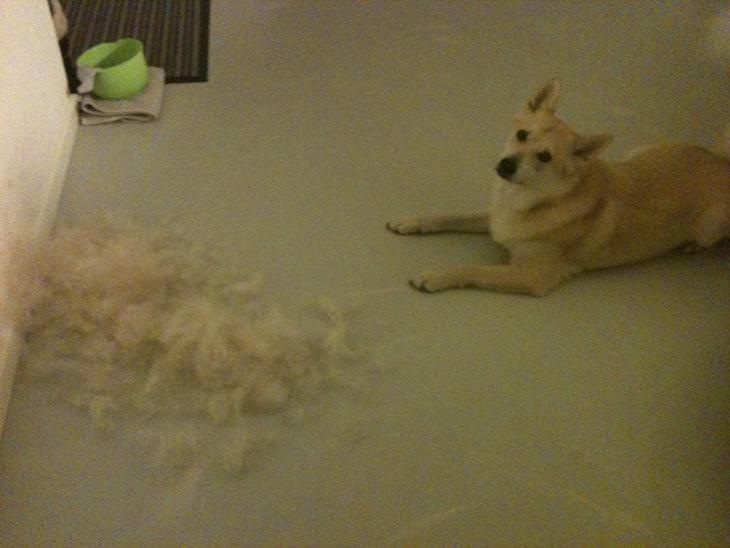 Ja så er vi gået ind i fælde sæsonen og furminatoren må tages i brug... Der bliver børstet hver dag for at få bugt med hårene...