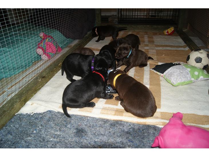 Senere koger jeg vand, lader det køle lidt af og hælder det over en skal tørfoder. Efter ca en halv times tid er det opblødt så meget at det har en grødagtig konsistens, så hvalpene kan spise det. Det er lidt spændende om det kan lide det, men om de kan - de er helt vilde med det og den ene må jeg holde lidt væk til sidst, så de andre kan komme til og han ikke får mavepine.