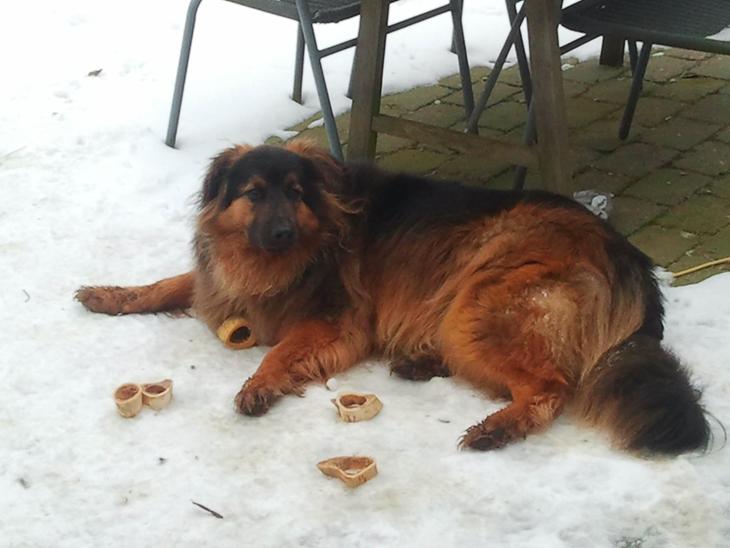 Valter hygger sig i sneen med alle sine ben ;-)