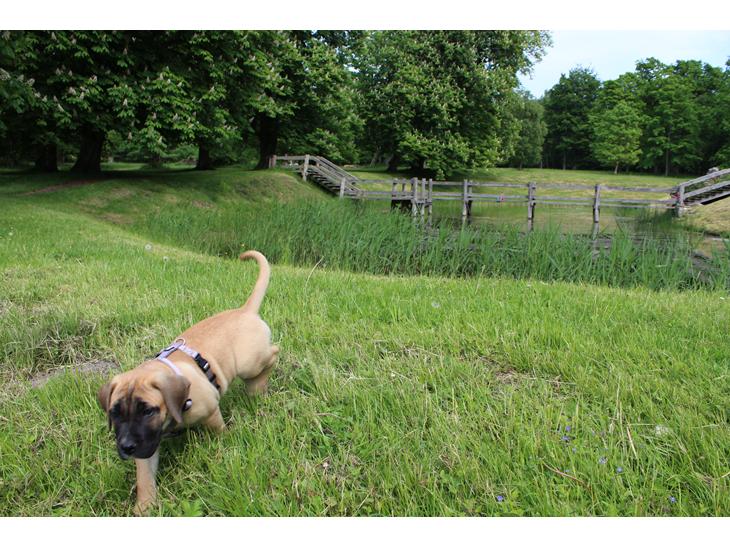 På kort tur omkring ruinen med hundene.