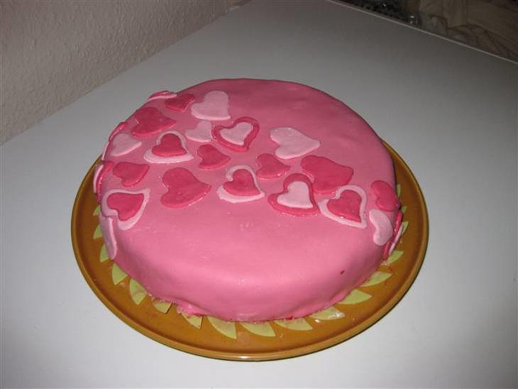 Hjerterne er fra en udstiksform fra Ikea! Købte sådan en rund blå pakke med 10 forskellie forme tror jeg.. Og havde ikke nok til at lave forskellige farver fondant, så det blev røde alle sammen, og så var hjerter jo passende