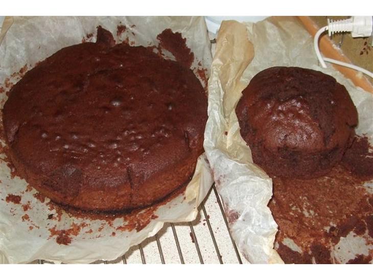 Jeg vil kun lave den store af dem, så ved ikke om man skal dele chokoladekagen, for at lægge en ovenpå også?