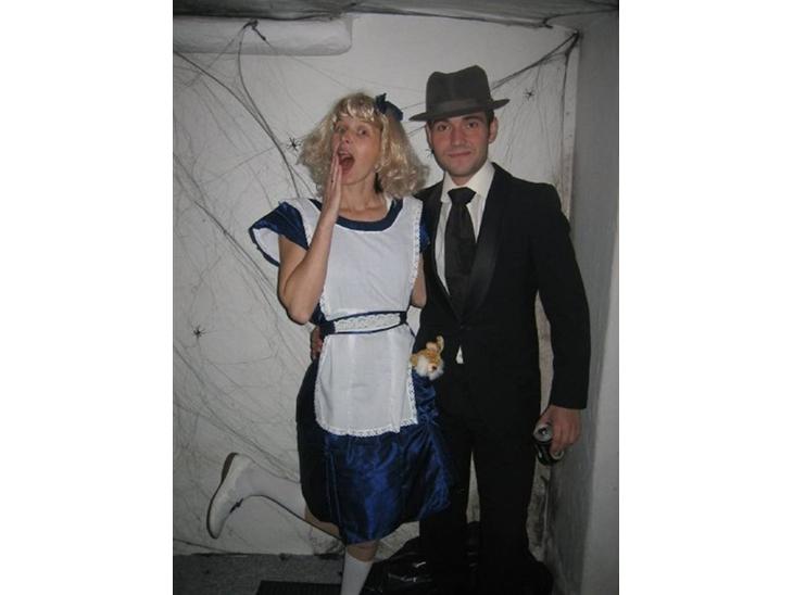 Lavet af en gammel blå damenatskjorte, en gammel hvid undertrøje + lidt tyl til at lave puff under kjolen med :)