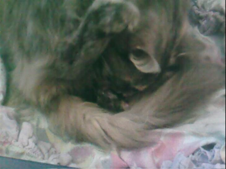 Her er nogle få billeder af det nye kuld killinger Zimba fødte d.1 april ! . Den røde er en hankat og hedder Cleo, og den grå er en hun, og hedder Fiona (; . De har begge striber efter deres far ! . Her kommer de , meget gerne nogle kommentarer til dem (; :