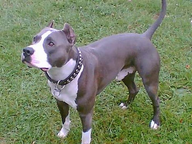 Flux, han vejer 31kg...han er blå med hvid aftegninger