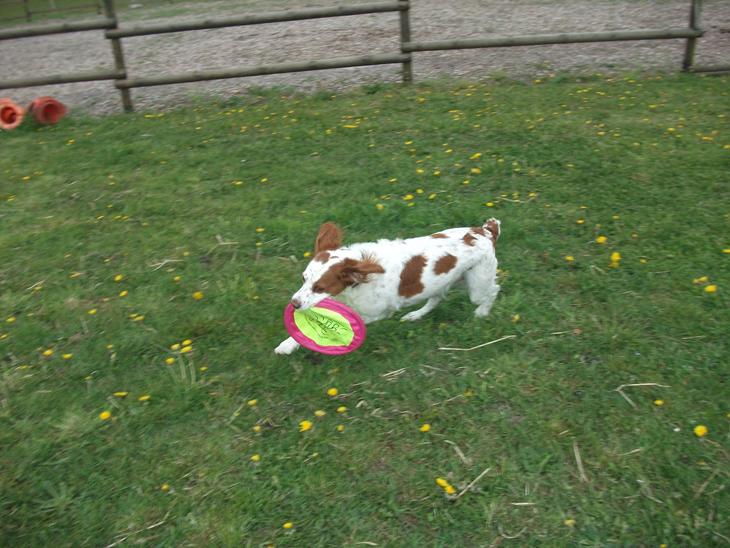 Hun elsker at være en tur i skoven, en gå tur, om sommeren bader vi på stranden med hende og Chili ( vores anden Breton) Hun bliver også brugt til jagt, og det elsker hun.