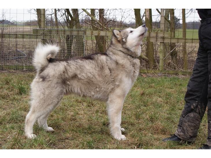 En dejlig Malamute med masser af temperament, men er knald god foran en slæde eller en løbsvogn.