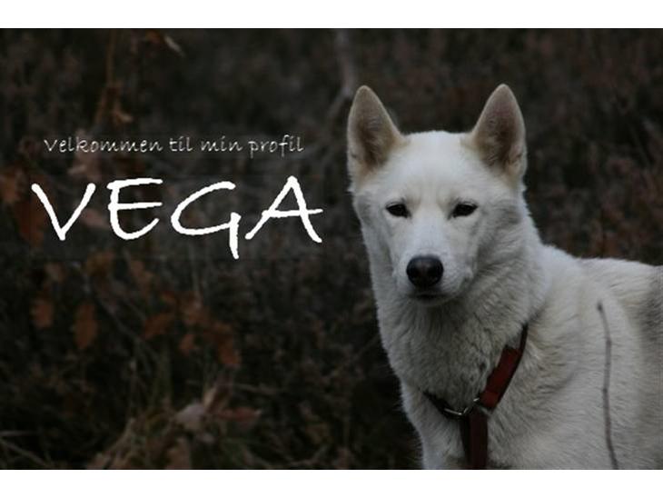 Vega er en slank, sporty tæve. Hun er meget lys, næsten hvid - har en grå "saddel". Hun har kønne, brune øjne og et dejligt ansigt. Hun ser altid kvik og vågen ud - venter på sit snit til at lave ballade!