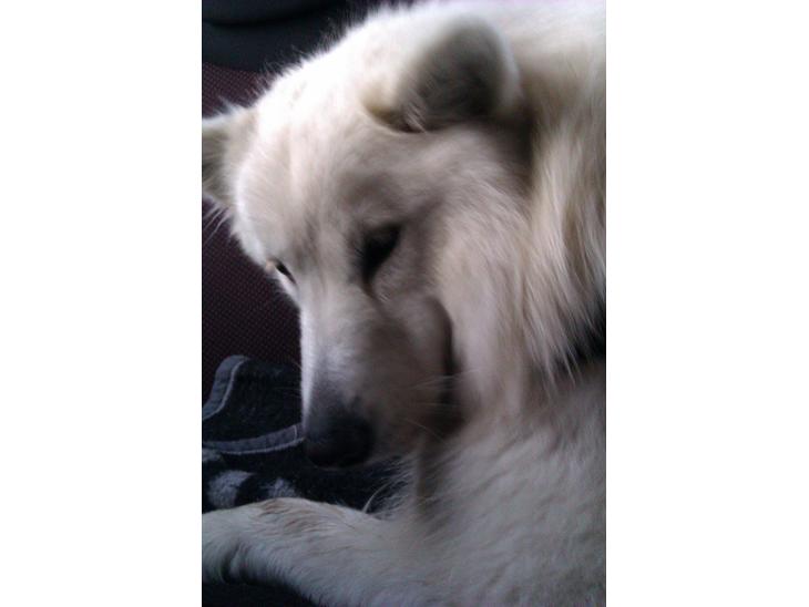 Hun er krid hvid med de dejligste øjne! hun elsker at ligge sammen med en i sengen og bare snakke og hygge! hun kan godt lide at lege med bolde! og så æder hun hele tiden! xD