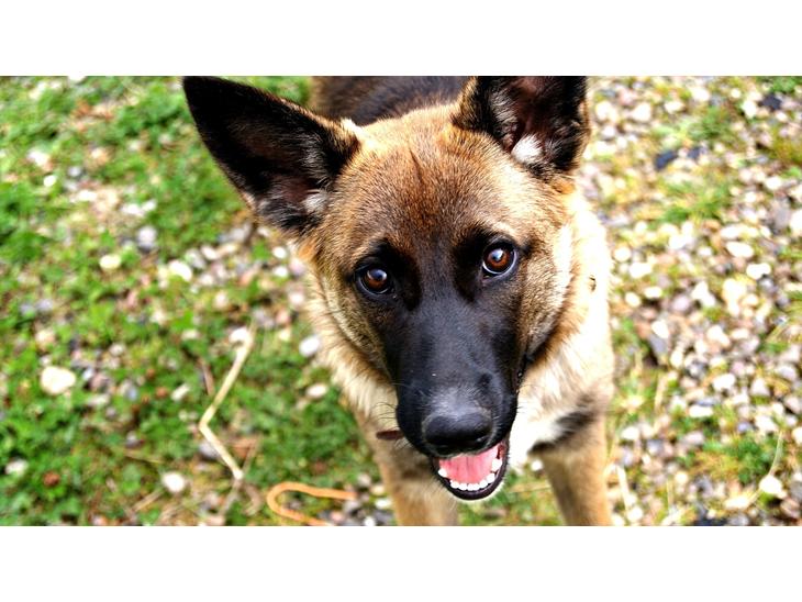 Hun er en blanding af: Halv Schæfer, kvart Border Collie og kvart Belgisk Hyrdehund (Malinois)
