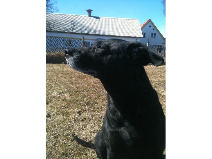 hun er sort. ikke helt. har lidt gråt skæg, det er lidt sjovt da hun ikke altid har haft det. hun har en lille hvid plet på brystede. hun er så kærlig, elsker børn og passer meget godt på dem. hun bedstemme her hjemme og er en rigtigt forkælet. hun har sine steder at ligge. under min seng og tæt på et vindue, så hun kan kigge ud og styre det hele. gider ikke rigtigt at jagte katte eller hare mere da hun ved de er hurtigere. hun elsker griseøre, eller en lille pølse. hun spiser ikke så meget, da der er meget hun ikke kan lide af mad. spiser kun en gang om dagen og det er aftens mad, dog kan der godt komme lidt ned. altså griseøre eller en lille hundekiks. det er dog ikke altid hun vil spise hundekiks. jeg elsker hende virkelig højt og har meget svært ved at forlade hende. hun har altid være der når jeg har brug for hende, hun er min lille guldklup og vil ikke være her i dags vis det ikke var for hende.