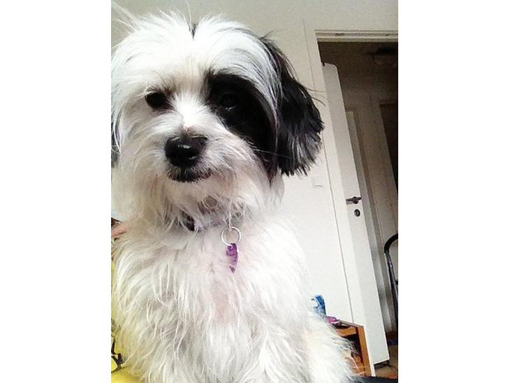 Hun er 1½ år gammel. Hun er en lille charmerende, livlig og glad pige. Hun er super frisk, og en fantastisk hund. Vi elsker hende så meget. Hun fælder ikke, og det er et stort plus. Hun er meget glad for at lege, og der er altid gang i hende, undtagen om aftenen, hvor hun falder "død" om nogen gange. Hun er også en lille puttetrold. Hun elsker og ligge i sengen, og er også lidt god til at sove længe. Hun kan sagtens være alene hjemme. Hun er en bedårende hund. Hun er simpelthen den mest fantastiske hund jeg har mødt.