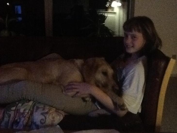 hun er en hund der er lidt bange fordi der hvor hun sidt boret fik hun tekst hele tiden og hun er blivet bidt af en anden hund