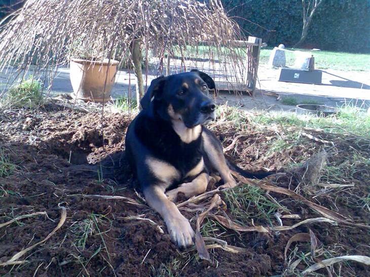 Han har fået labradorens "forkrop" og colliens "bagkrop", og rottweilerens aftegn *tsk tsk*... FIIIN hund....