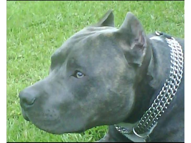rigtig flot og charmerende "blue-amstaff" med hvide aftegninger på bryst og nederst på bagpoterne