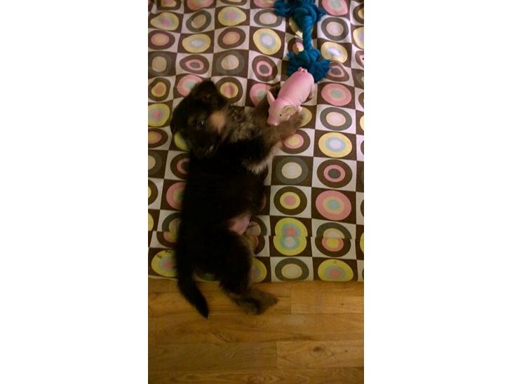 Vi har nu haft glæde af ham i 5 uger og det har været med liv og glade dage he he... Meen han er også meget fræk til tider ;-) og meget legesyg så hele stuen snart ligner et legeland he he... Han leger super godt med andre hunde, for tiden i legestue i Maxizoo hvilket vi har været rigtig glad for, så han kan møde andre hvalpe, og ikke kun de store hunde som vi møder i skoven :-)