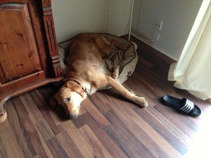 Gaya er kommet til os fordi hendes forrige ejere ikke kunne få hende til at rette sig. Hun tissede indenfor og ødelagde rigtig meget.