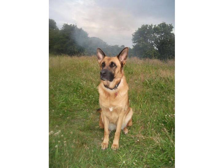 Hun vejer 32 kg og har en helt gennemsnitlig størrelse for en schæfertæve på hendes alder.