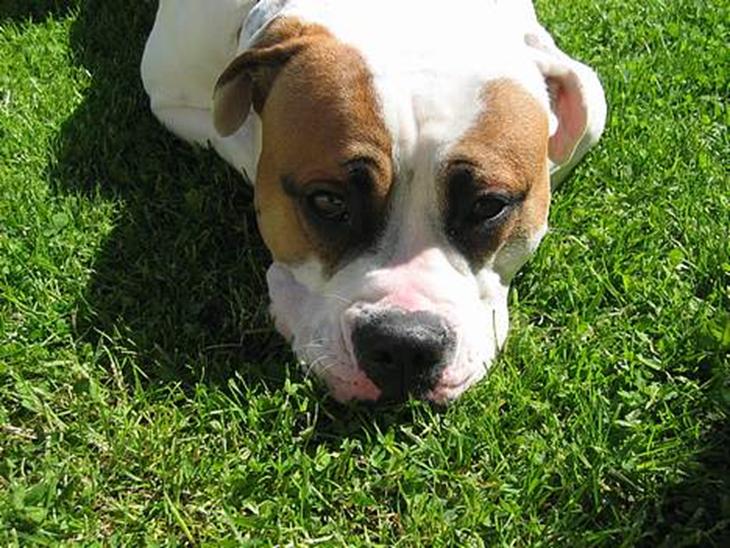 Kenzo er født den 15. august 2005. Hans mor var en standard amerikansk bulldog, mens han far er en bully... Det er der han har sit dejlige store hoved fra :o)
