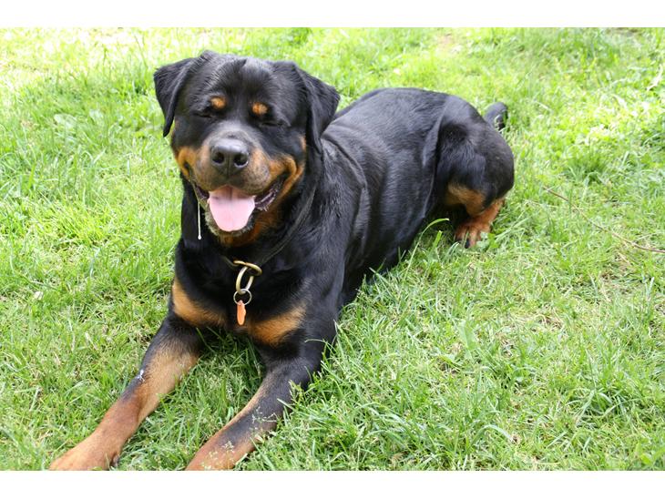 Stor hanhund, manglede dog fylde pga hans unge alder, men havde et meget smukt ansigt, perfekt tandsæt, fornuftig benstilling og en god str. rottweiler.