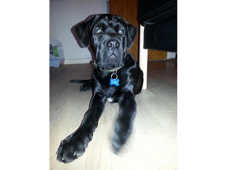 Blanding af Cane Corso og Engelsk Mastiff. Han er en glad lille dreng der elsker sin veninde, vores 5 år gamle rottweiler blanding.