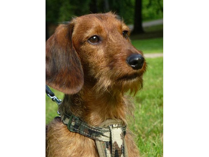 Max er en rødbrun ruhåret gravhund på ca 2 år.