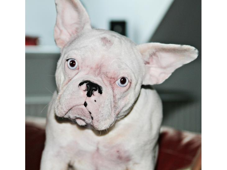 smuk buller, med blå øjne, og få pletter. Mørk "hale"