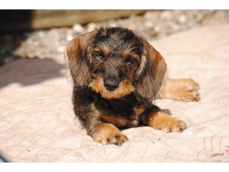 Alma er en lille ruhåret dværg gravhund på ca 5 kg .