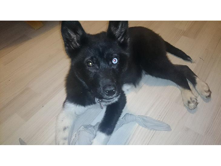 han er en blanding mellem en alaskan husky og sibirian husky.