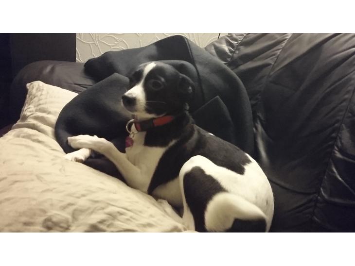 hun er en blanding af Dansk-svensk gårdhund og Grey Hound. Hun er en super dejlig lille charmetrold, der tror hun ejer det hele.. en gang i mellem gider hun at lege med pind og ellers skal der bare løbes. Men bedst af alt er at putte og nusses for, og helst når hun ligger under dynen eller et tæppe.. derudover er hun meget ivrig så hun er svær at lærer tricks. Men ellers bare snaksaglig og kælen..