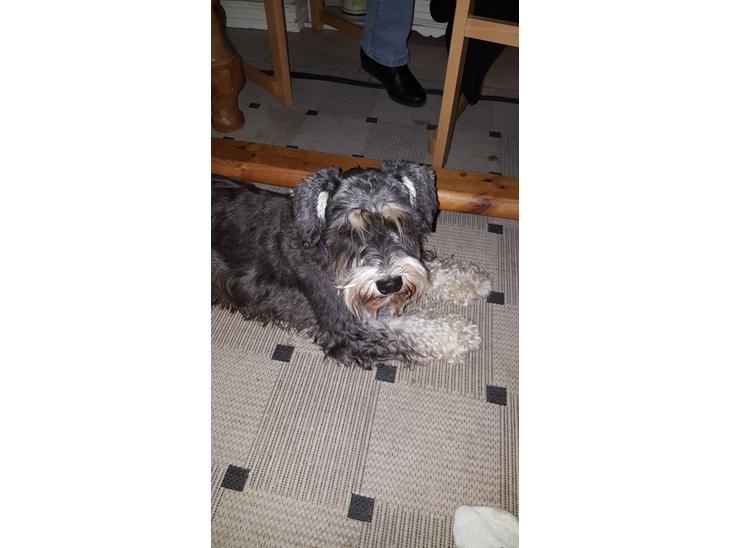Hun er dværg schnauzer i sort sølv og vi går til udstilling hvor hun klare sig godt.. vi håber lidt på at kunne finde andre der har samme race som hende da vi er ret ny med racen og vil rigtig gerne lære så meget som muligt og ikke minst få nye lege kammerarter.
