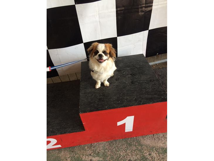 Han kan sitte, dæk, giv pote, High five, danse og sidde oprejst.