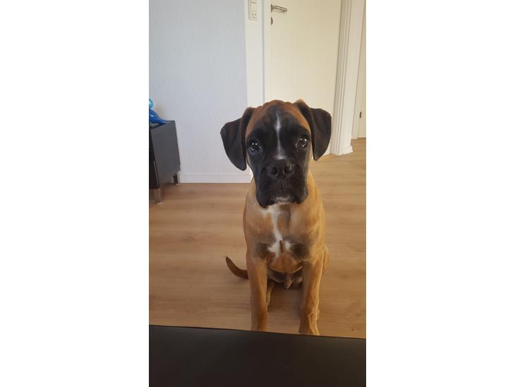Han er lærenem, og vi er allerede i gang med træningen - og glæder os til at starte til hvalpetræning i slutningen af August.