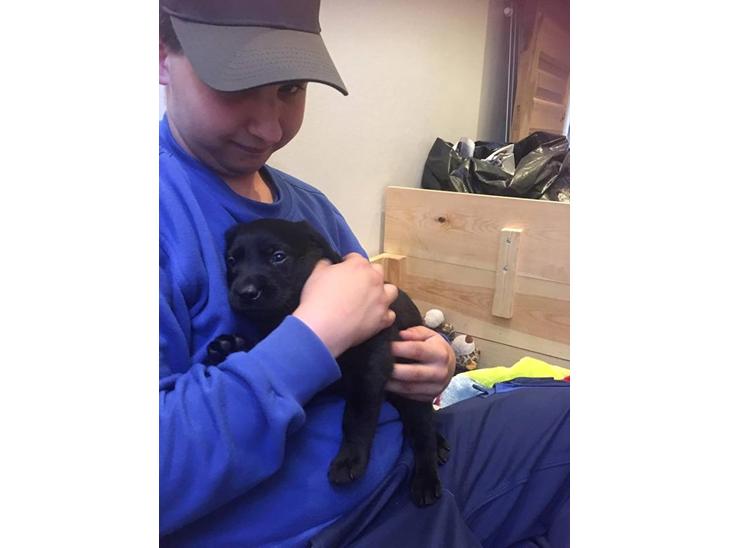 hun er en lille sort pige og hun hedder brownie hun bliver 8 uger den 7-9-16 og vi får hende hjem den 9-9-16 hun vil med tiden blive optrænet til at være besøgs hund