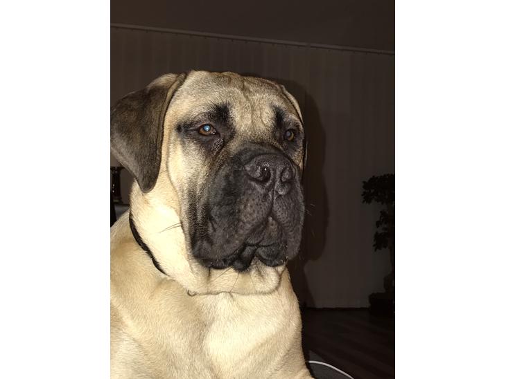 Han elsker andre hunde (når han lige har set den an og sikre sig de ikke æder ham).. især store hunde der kan tåle hans store poter