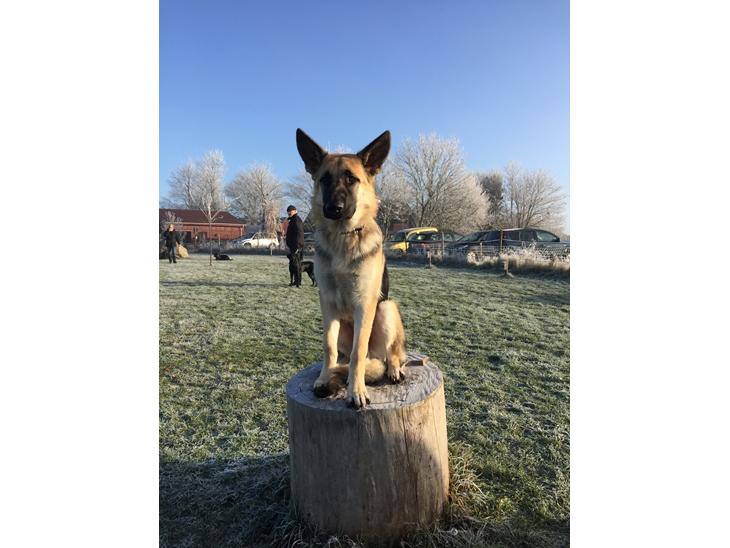 Lysere i pelsen end en alm. schæfer efter hans far ellers har han schæfer træk både i farver, udsende og personlighed..