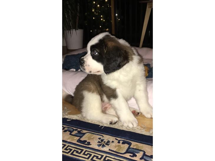Lille bedårende langhåret Sankt Bernhard - hans mor og far er korthårede, men Olfert blev altså langhåret :-)